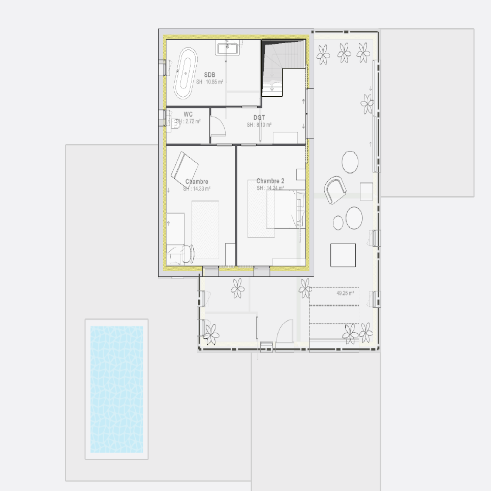 - Un projet déjà imaginé en complète harminie avec le terrain si vous le souhaitez.... Les photos de 4 à 7, vous découvrirez une étude de faisabilité réalisée par Syell Immobilier, pensée pour exploiter pleinement les qualités du terrain. Le projet propose une maison contemporaine ouverte sur la nature, avec de larges ouvertures et des espaces de vie tournés vers l’extérieur, créant une sensation de vivre dedans-dehors au quotidien, que ce soit dans les pièces de vie ou aux étages. Une architecture conçue pour profiter de la lumière, du cadre boisé et offrir une qualité de vie rare aux portes de Bordeaux.